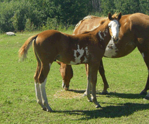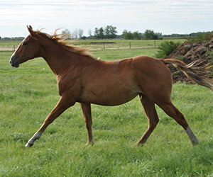 Another good looking filly. She is well put together. Take a good look at her. She has such great confirmation. She also has such a nice smooth stride. She would make an excellent riding horse. Check out her pedigree "Pepinics Master". These foals have been used in many disciplines.